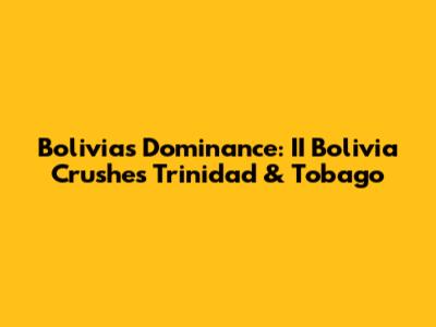 Bolivia's Dominance: II Bolivia Crushes Trinidad & Tobago
