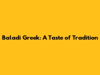 Baladi Greek: A Taste Of Tradition