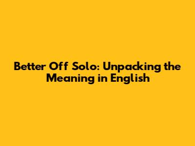 Hey guys! Ever heard someone say they're "better off solo"? It's a phrase that's been tossed around a lot, and it's got some serious weight behind it. It's not just a casual comment; it's a statement about choosing to be independent, to prioritize yourself, and to maybe even ditch the traditional relationship route. This article is your ultimate guide to understanding the better off solo meaning in English, breaking down what it truly signifies, exploring its nuances, and helping you figure out if it resonates with your own life. We'll dive deep into the emotional, social, and personal aspects of this increasingly popular perspective.