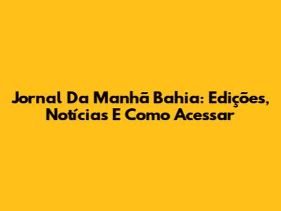 Jornal Da Manhã Bahia: Edições, Notícias E Como Acessar