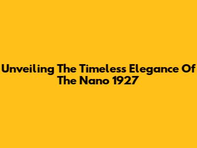 Unveiling The Timeless Elegance Of The Nano 1927