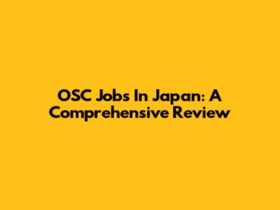 OSC Jobs In Japan: A Comprehensive Review