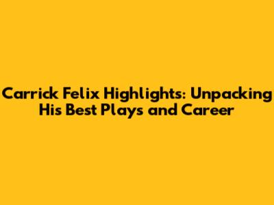Carrick Felix Highlights: Best Plays & Career