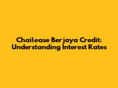Chailease Berjaya Credit: Understanding Interest Rates