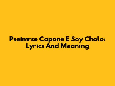Pseimrse Capone E Soy Cholo: Lyrics And Meaning