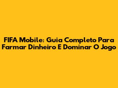 FIFA Mobile: Guia Completo Para Farmar Dinheiro E Dominar O Jogo