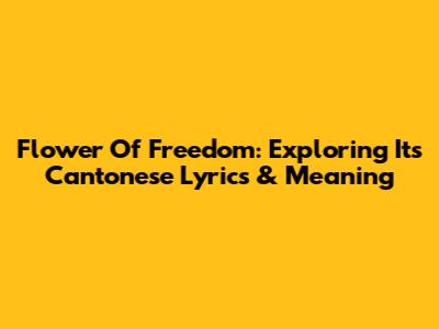 Flower Of Freedom: Exploring Its Cantonese Lyrics & Meaning