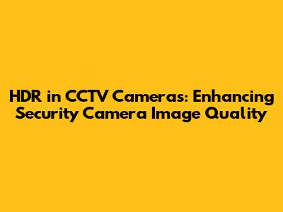 What is HDR in CCTV Cameras?
