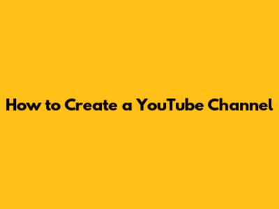 How To Create A YouTube Channel