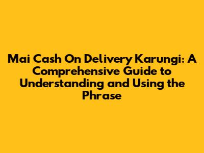 Understanding the Basics of "Mai Cash On Delivery Karungi"