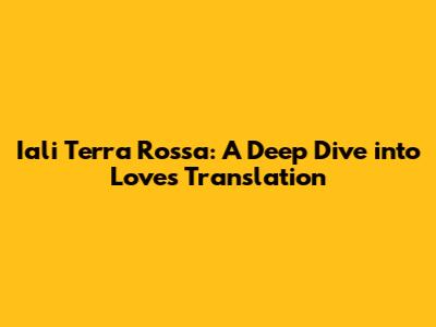 Iali Terra Rossa: A Deep Dive Into Love's Translation