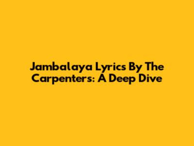 Jambalaya Lyrics By The Carpenters: A Deep Dive
