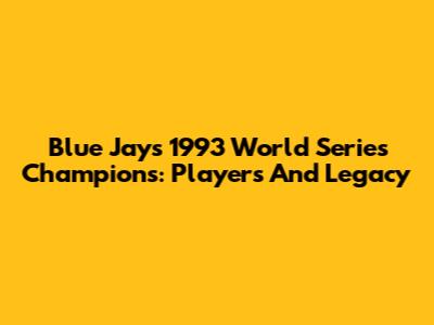 Blue Jays 1993 World Series Champions: Players And Legacy