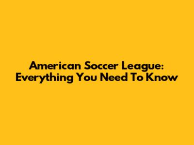 American Soccer League: Everything You Need To Know