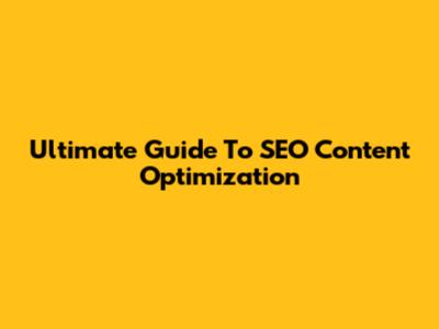Ultimate Guide To SEO Content Optimization
