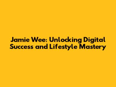 Jamie Wee: Unlocking Digital Success And Lifestyle Mastery