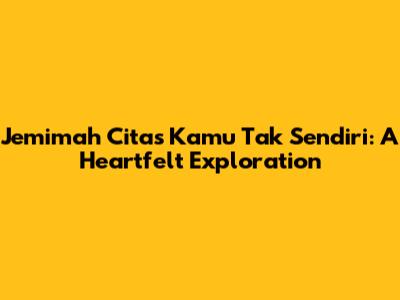 Hey music lovers! Ever stumbled upon a song that just hits you right in the feels? Well, Jemimah Cita's rendition of 'Kamu Tak Sendiri' is one of those tracks. This isn't just a cover; it's a soulful journey that resonates with anyone who's ever felt alone or needed a reminder that they're not. This article will be a deep dive into the lyrics of 'Kamu Tak Sendiri' by Jemimah Cita, exploring the core message, the emotional impact, and why it's a must-listen for music enthusiasts. We'll also take a sneak peek at the preview of 'Kamu Tak Sendiri', which offers a glimpse into the emotional power of this song. So, grab your headphones, and let's get started!