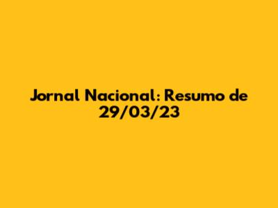 E aÃ, curtiram o resumo? O Jornal Nacional, na edição de 29 de março de 2023, trouxe uma cobertura completa e aprofundada sobre os assuntos que estão moldando o nosso presente e futuro. Ficar bem informado é o primeiro passo para fazer a diferença. A gente sabe que nem todo mundo tem tempo de assistir ao jornal todos os dias, mas é pra isso que estamos aqui, trazendo o que de mais importante aconteceu. Continue acompanhando o JN e, claro, volte sempre aqui pra ficar por dentro de tudo! Valeu, galera!