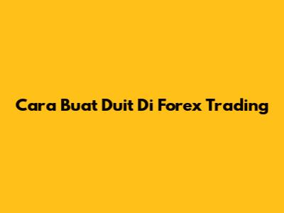 Cara Buat Duit Di Forex Trading