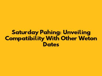 Saturday Pahing: Unveiling Compatibility With Other Weton Dates