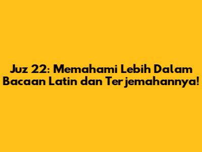 Hai, teman-teman! Kali ini, kita akan menjelajahi Juz 22 dalam Al-Qur'an. Kita akan membahas bacaan latin, terjemahannya, dan mencoba menggali inti sari dari ayat-ayat yang ada di dalamnya. Jadi, mari kita mulai petualangan seru ini untuk memahami lebih dalam makna dari Juz 22! Kita akan membahas tuntas mulai dari surat apa saja yang ada di Juz 22, bacaan latinnya, terjemahan per ayatnya, hingga pelajaran penting yang bisa kita ambil. Penasaran kan? Yuk, langsung saja!