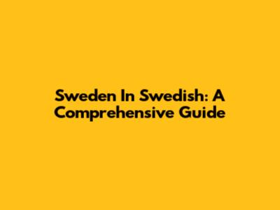 Sweden In Swedish: A Comprehensive Guide