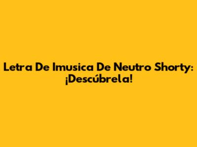 Letra De Imusica De Neutro Shorty: ¡Descúbrela!