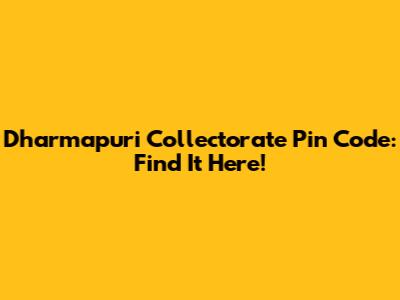 Dharmapuri Collectorate Pin Code: Find It Here!