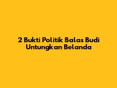 2 Bukti Politik Balas Budi Untungkan Belanda