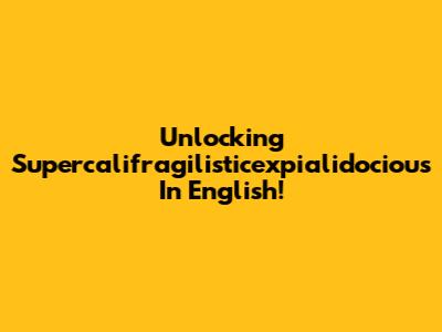 Unlocking 'Supercalifragilisticexpialidocious' In English!