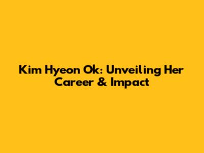 Kim Hyeon Ok: Unveiling Her Career & Impact