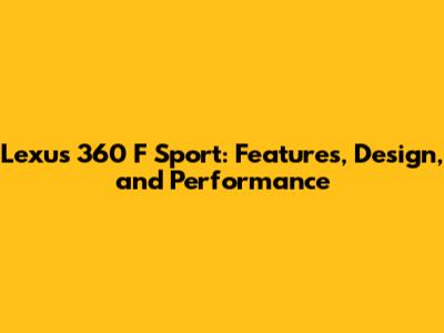 Lexus 360 F Sport: Features, Design, And Performance
