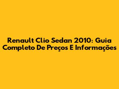 Renault Clio Sedan 2010: Guia Completo De Preços E Informações