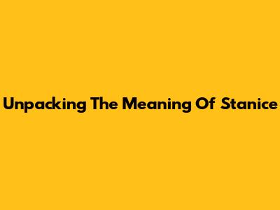 Unpacking The Meaning Of 'Stanice'