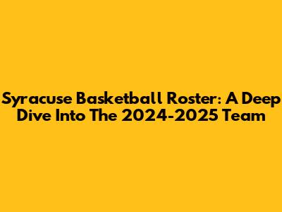 Syracuse Basketball Roster: A Deep Dive Into The 2024-2025 Team