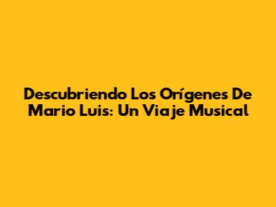 Descubriendo Los Orígenes De Mario Luis: Un Viaje Musical