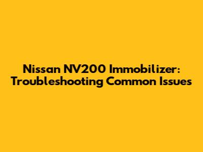 Troubleshooting Your Nissan NV200 Immobilizer