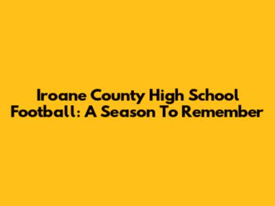Iroane County High School Football: A Season To Remember