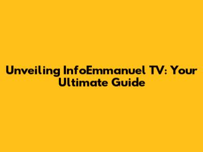Unveiling InfoEmmanuel TV: Your Ultimate Guide