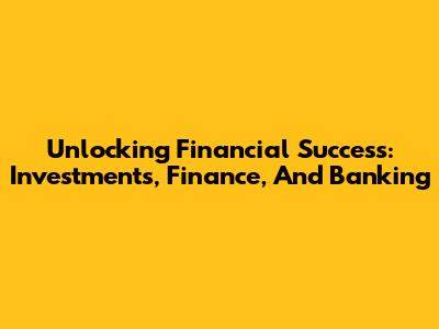 Unlocking Financial Success: Investments, Finance, And Banking