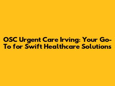 OSC Urgent Care Irving: Your Guide To Quick & Quality Healthcare