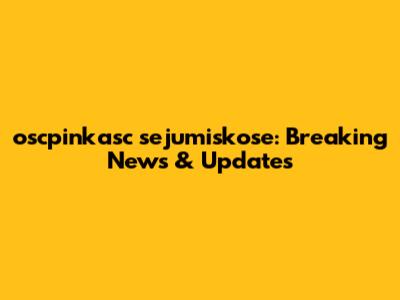 Oscpinkasc Sejumiskose: Breaking News & Updates