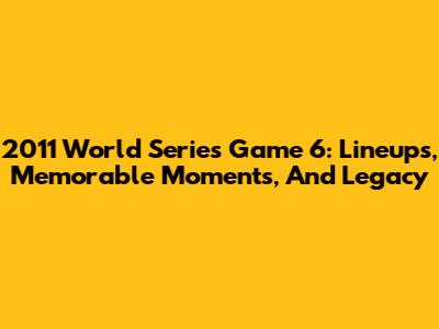 2011 World Series Game 6: Lineups, Memorable Moments, And Legacy