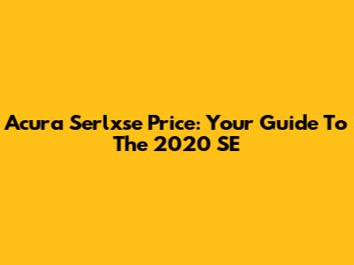 Acura Serlxse Price: Your Guide To The 2020 SE