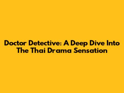 Doctor Detective: A Deep Dive Into The Thai Drama Sensation