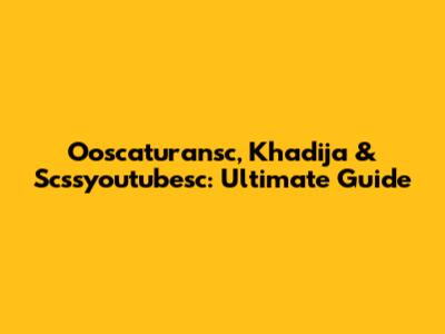 Ooscaturansc, Khadija & Scssyoutubesc: Ultimate Guide