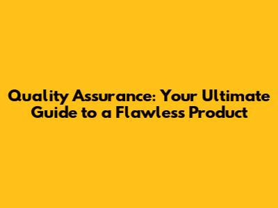 Quality Assurance: A Comprehensive Guide