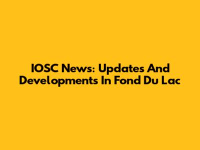 IOSC News: Updates And Developments In Fond Du Lac