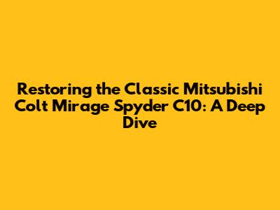 Hey car enthusiasts! Ever dreamt of cruising down the coast in a vintage convertible, the wind in your hair, the sun on your face? Well, for those of us with a soft spot for classic cars, that dream often starts with a restoration project. And today, we're diving headfirst into one of the coolest classics out there: the Mitsubishi Colt Mirage Spyder C10. This little beauty, especially the Spyder variant, is a real head-turner, and restoring one is an adventure in itself. So, let's get down to brass tacks and talk about what it takes to bring this iconic car back to its former glory.