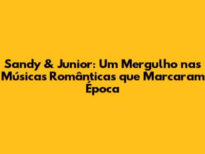 Vamos agora mergulhar em algumas das músicas românticas mais icônicas de Sandy & Junior, explorando suas letras, melodias e o impacto que tiveram em nossas vidas. Preparados para reviver esses sucessos?